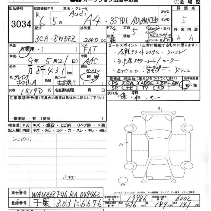 Audi A4 с аукциона Японии JU Chiba лот № 3034