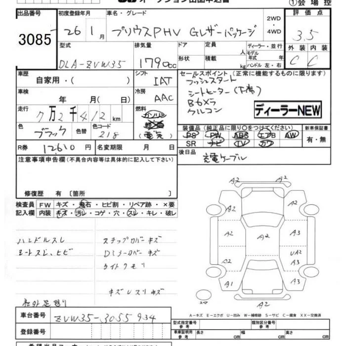 Toyota PRIUS PHV с аукциона Японии JU Chiba лот № 3085