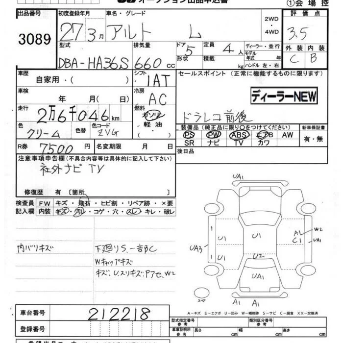 Suzuki ALTO с аукциона Японии JU Chiba лот № 3089