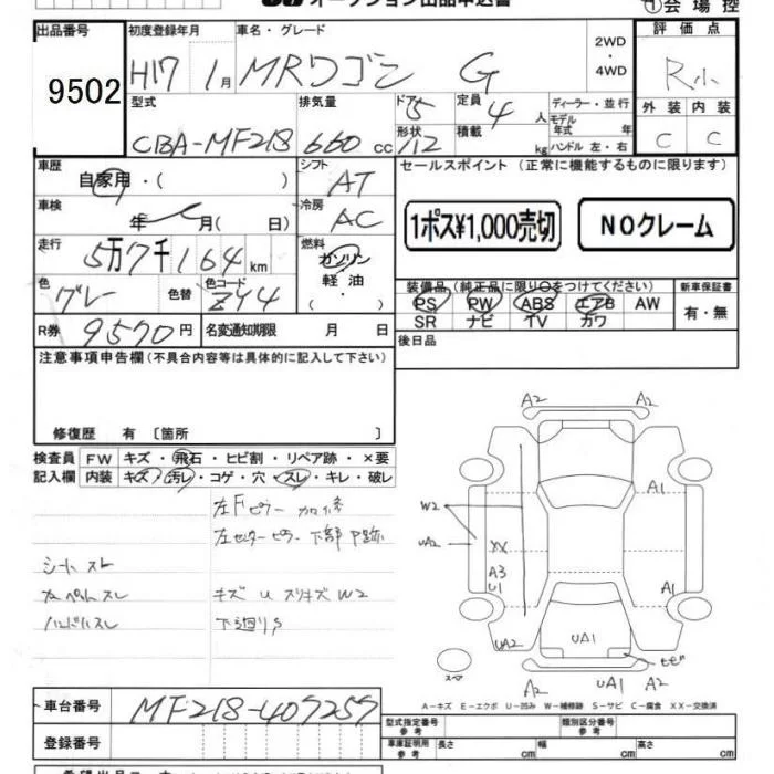 Suzuki MRWAGON с аукциона Японии JU Chiba лот № 9502
