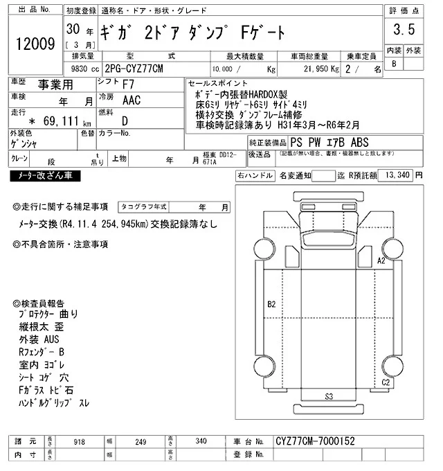 Isuzu GIGA с аукциона Японии ARAI Oyama VT лот № 12009