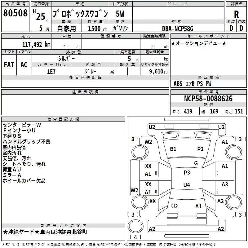 Toyota PROBOX с аукциона Японии TAA Yokohama лот № 80508