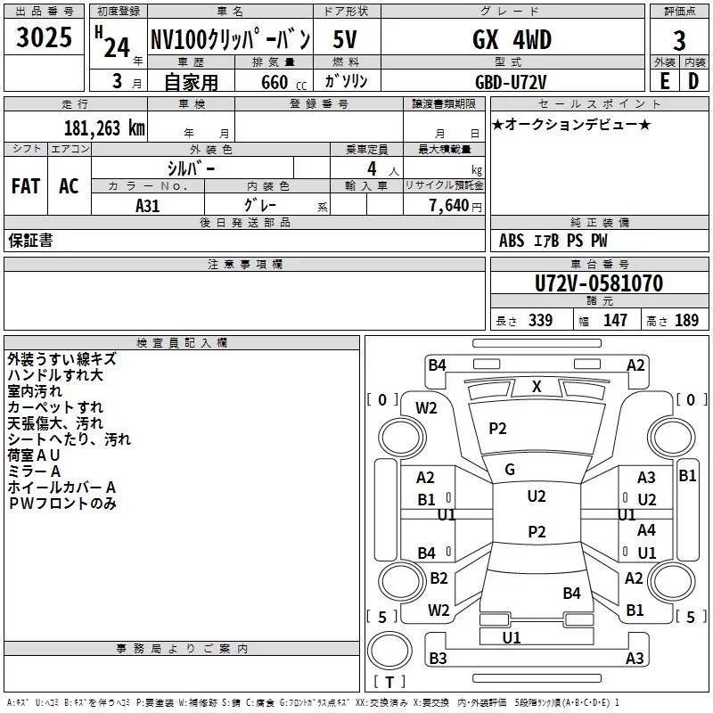 Nissan CLIPPER VAN с аукциона Японии TAA Yokohama лот № 3025