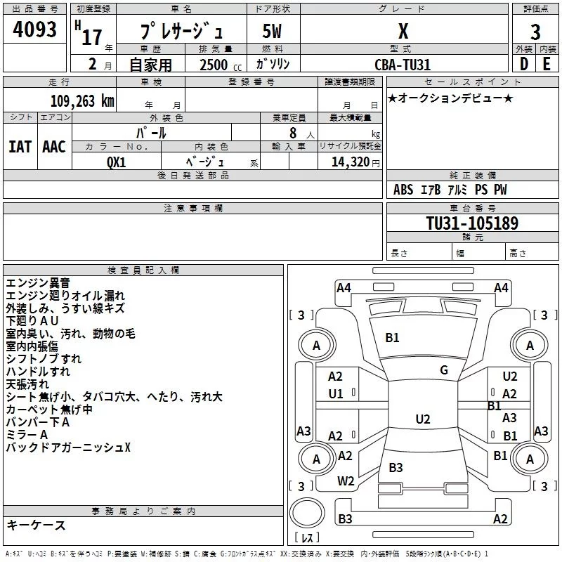 Nissan PRESAGE с аукциона Японии TAA Yokohama лот № 4093