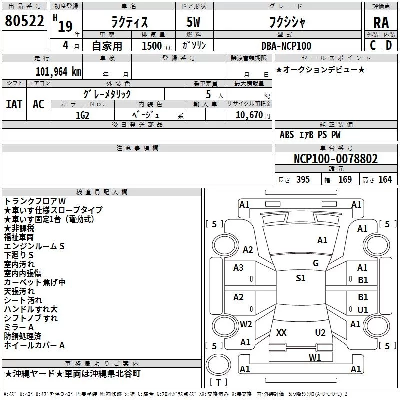 Toyota RACTIS с аукциона Японии TAA Yokohama лот № 80522