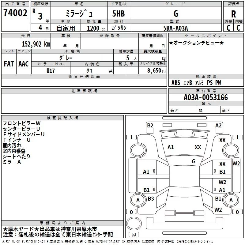 Mitsubishi MIRAGE с аукциона Японии TAA Yokohama лот № 74002