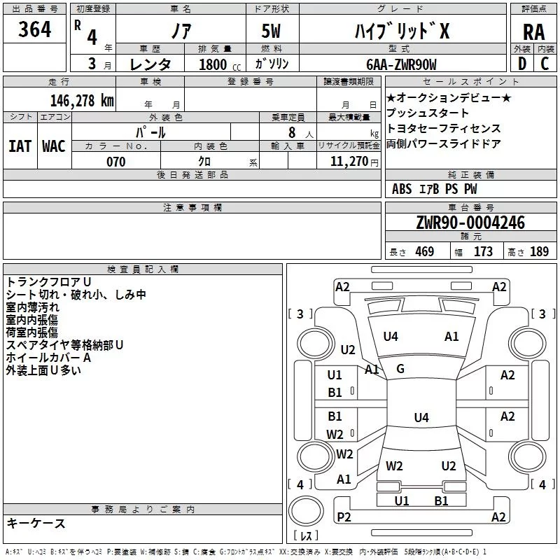 Toyota NOAH с аукциона Японии TAA Yokohama лот № 364