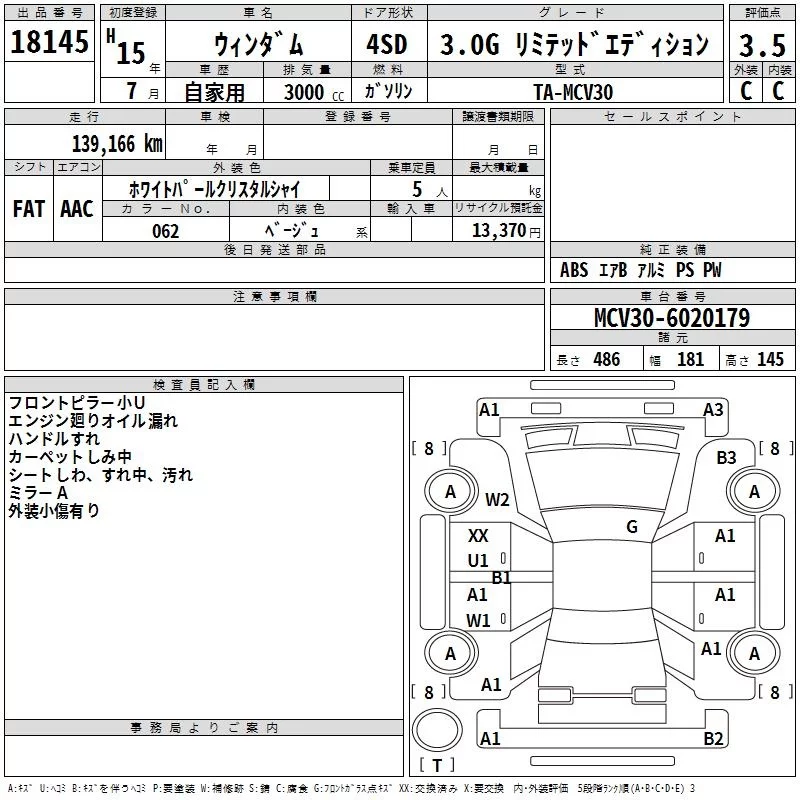 Toyota WINDOM с аукциона Японии TAA Yokohama лот № 18145
