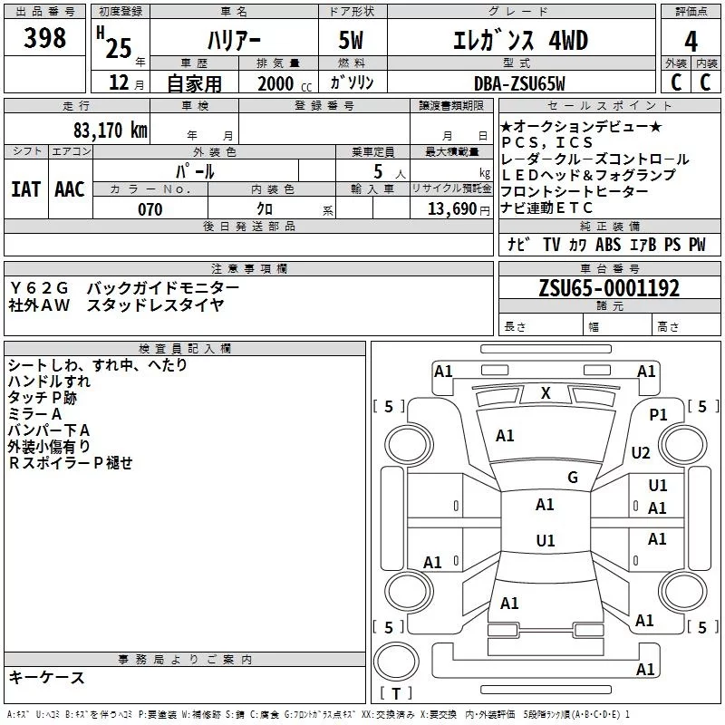 Toyota HARRIER с аукциона Японии TAA Yokohama лот № 398