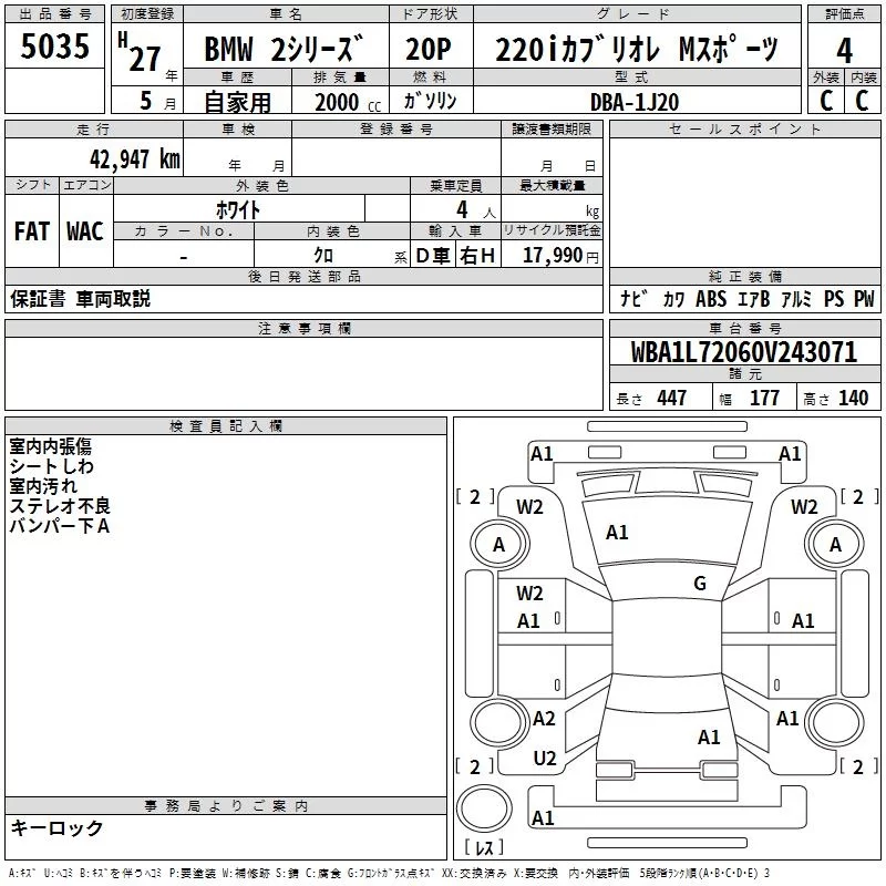 BMW 2-Series с аукциона Японии TAA Yokohama лот № 5035
