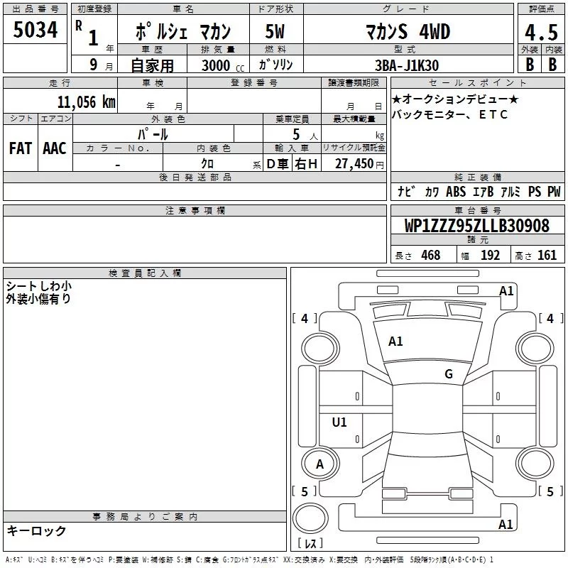 Porsche MACAN с аукциона Японии TAA Yokohama лот № 5034