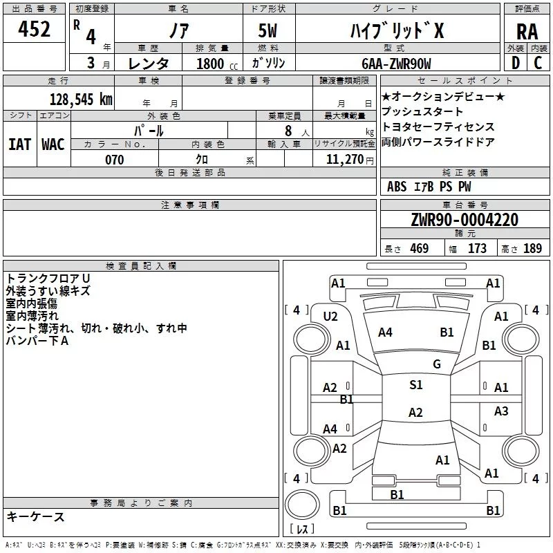 Toyota NOAH с аукциона Японии TAA Yokohama лот № 452