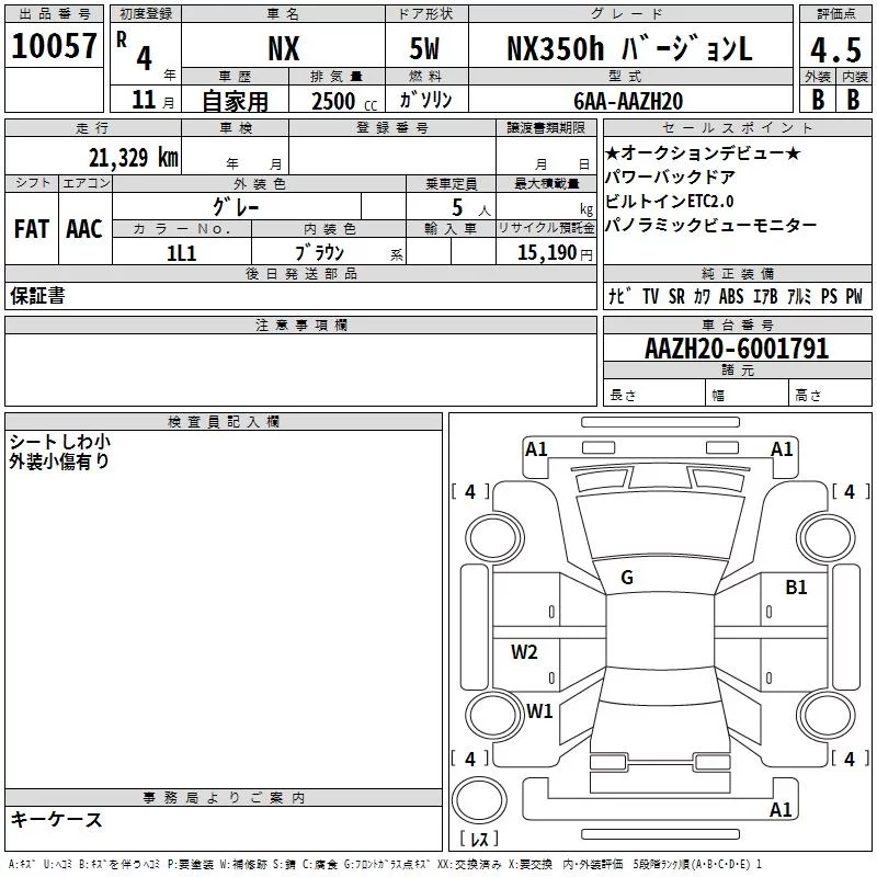 Lexus NX с аукциона Японии TAA Yokohama лот № 10057