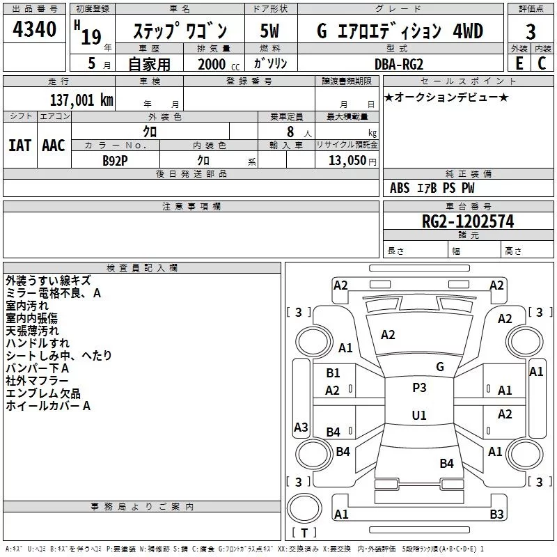 Honda STEP WAGON с аукциона Японии TAA Yokohama лот № 4340