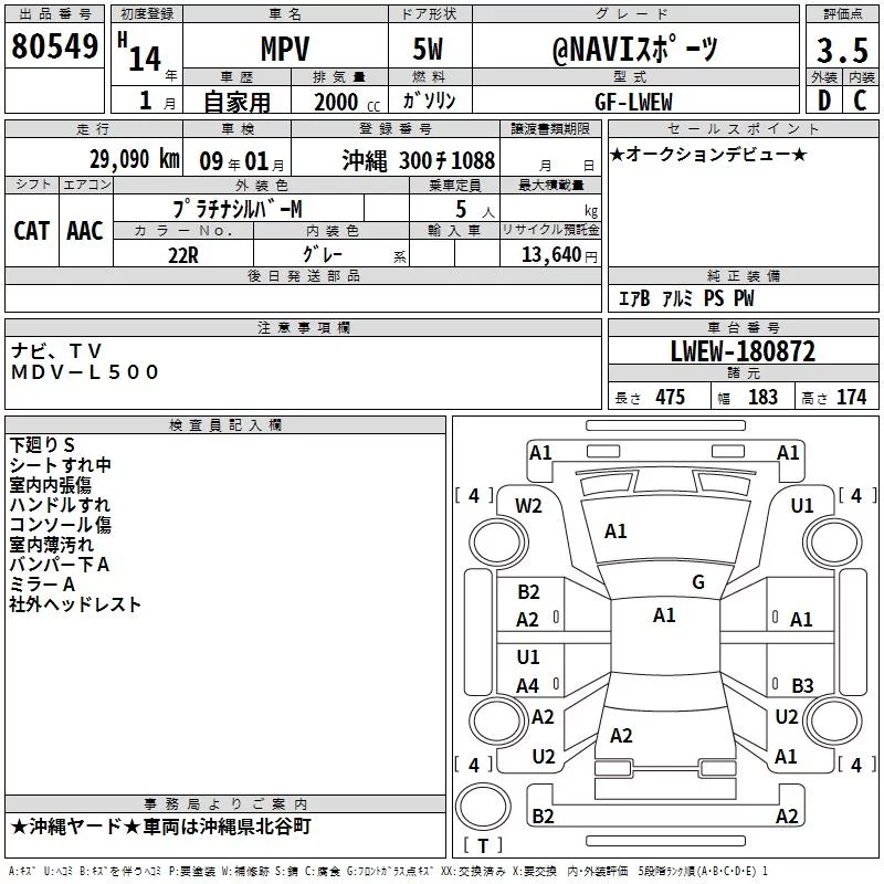 Mazda MPV с аукциона Японии TAA Yokohama лот № 80549