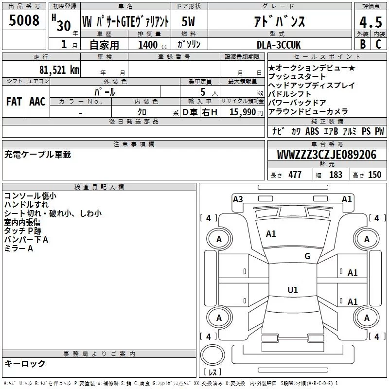 Volkswagen PASSAT VARIANT с аукциона Японии TAA Yokohama лот № 5008