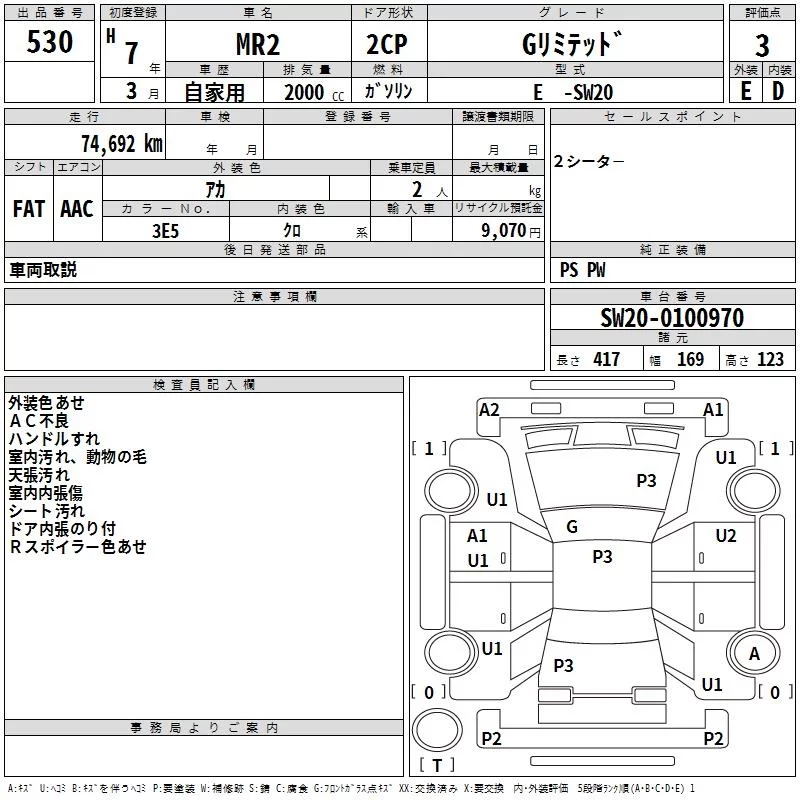 Toyota MR2 с аукциона Японии TAA Yokohama лот № 530
