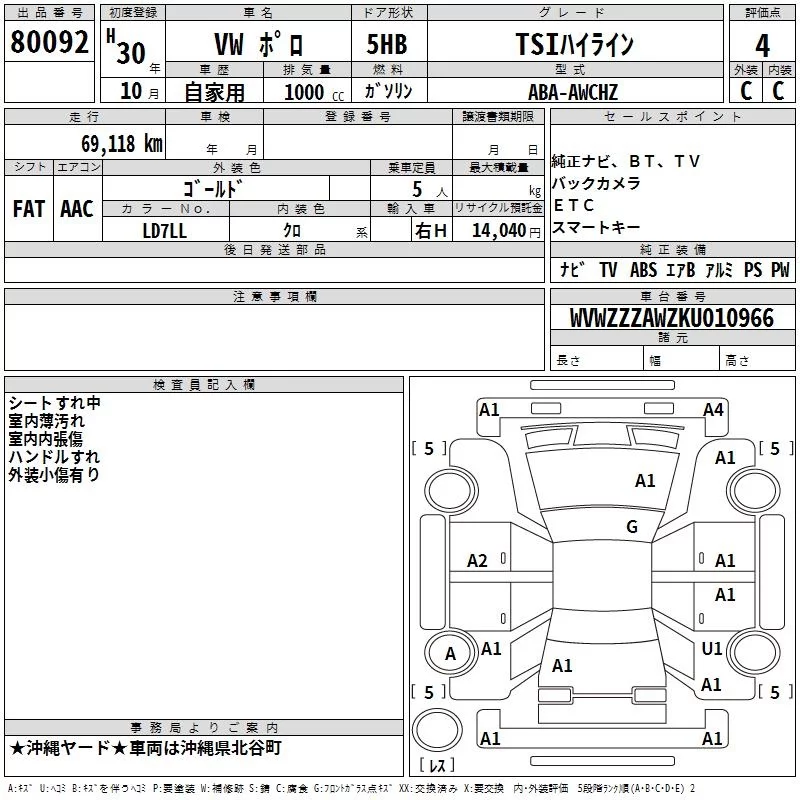 Volkswagen Polo с аукциона Японии TAA Yokohama лот № 80092