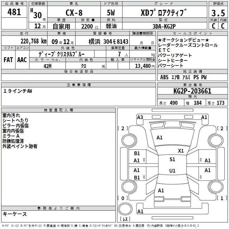 Mazda CX-8 с аукциона Японии TAA Yokohama лот № 481