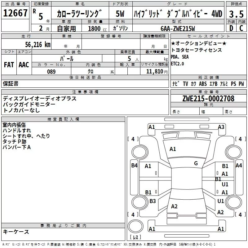 Toyota COROLLA TOURING с аукциона Японии TAA Yokohama лот № 12667