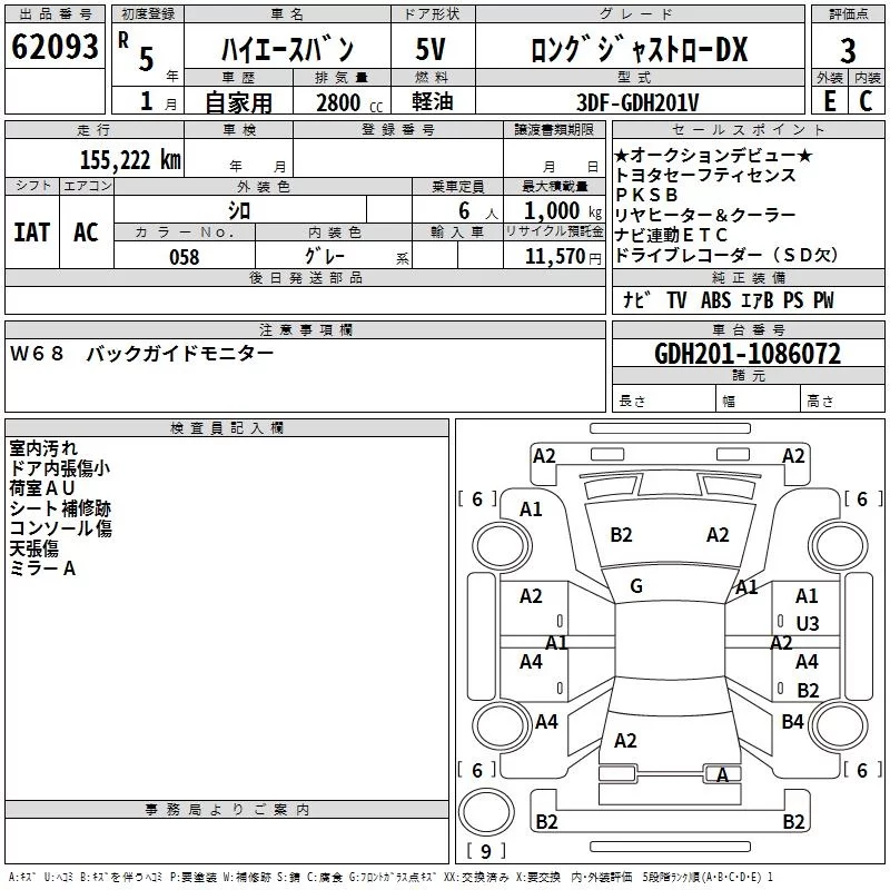 Toyota HIACE VAN с аукциона Японии TAA Yokohama лот № 62093