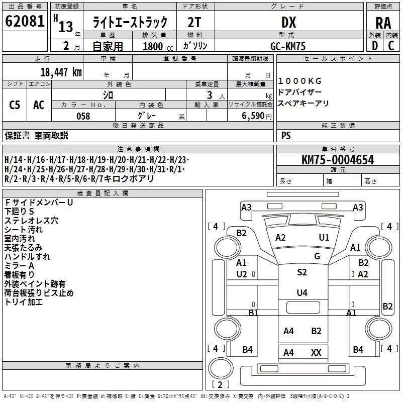 Toyota LITE ACE TRUCK с аукциона Японии TAA Yokohama лот № 62081