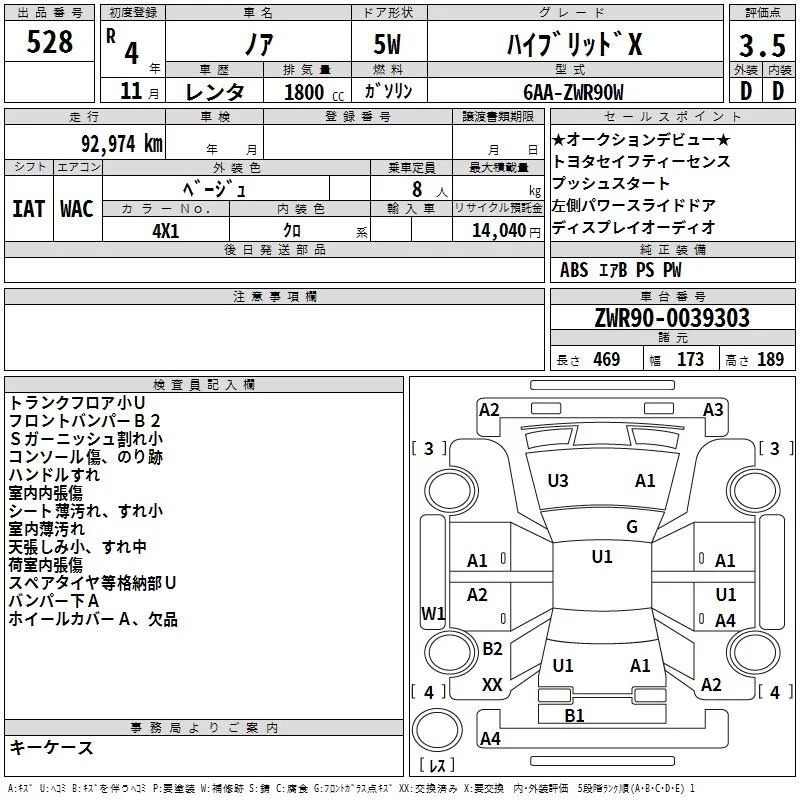 Toyota NOAH с аукциона Японии TAA Yokohama лот № 528