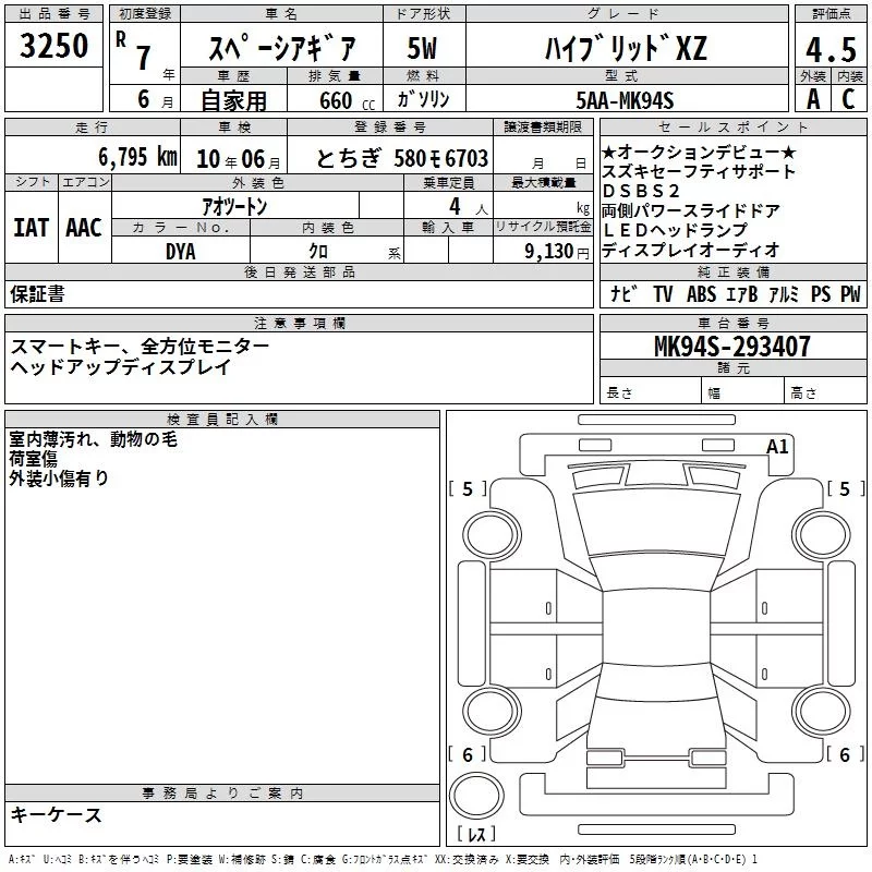 Suzuki SPACIA GEAR с аукциона Японии TAA Yokohama лот № 3250
