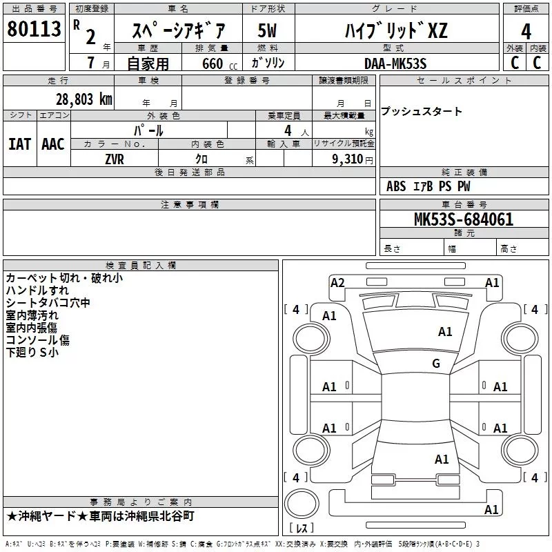 Suzuki SPACIA GEAR с аукциона Японии TAA Yokohama лот № 80113