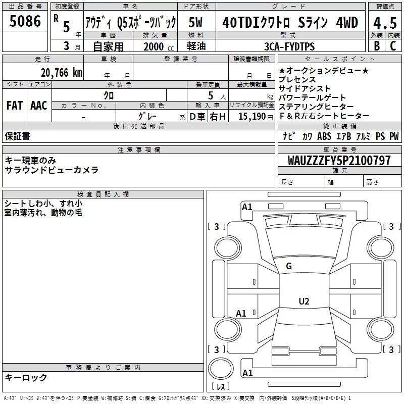 Audi Q5 с аукциона Японии TAA Yokohama лот № 5086
