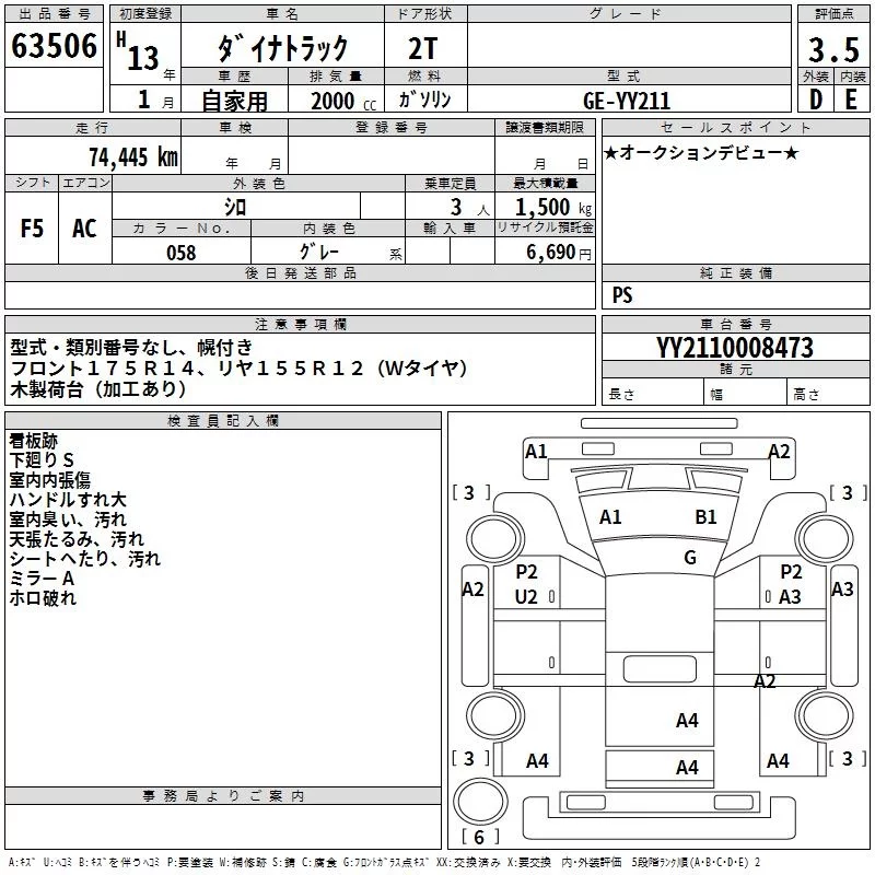 Toyota DYNA с аукциона Японии TAA Yokohama лот № 63506