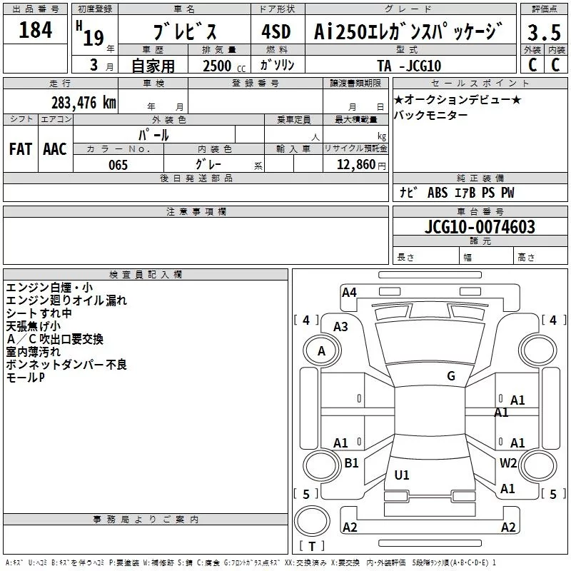 Toyota BREVIS с аукциона Японии TAA Hyogo лот № 184