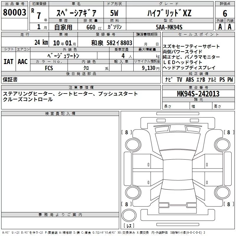 Subaru LEVORG с аукциона Японии TAA Hyogo лот № 80003