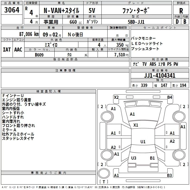 Honda N VAN с аукциона Японии TAA Hyogo лот № 3064