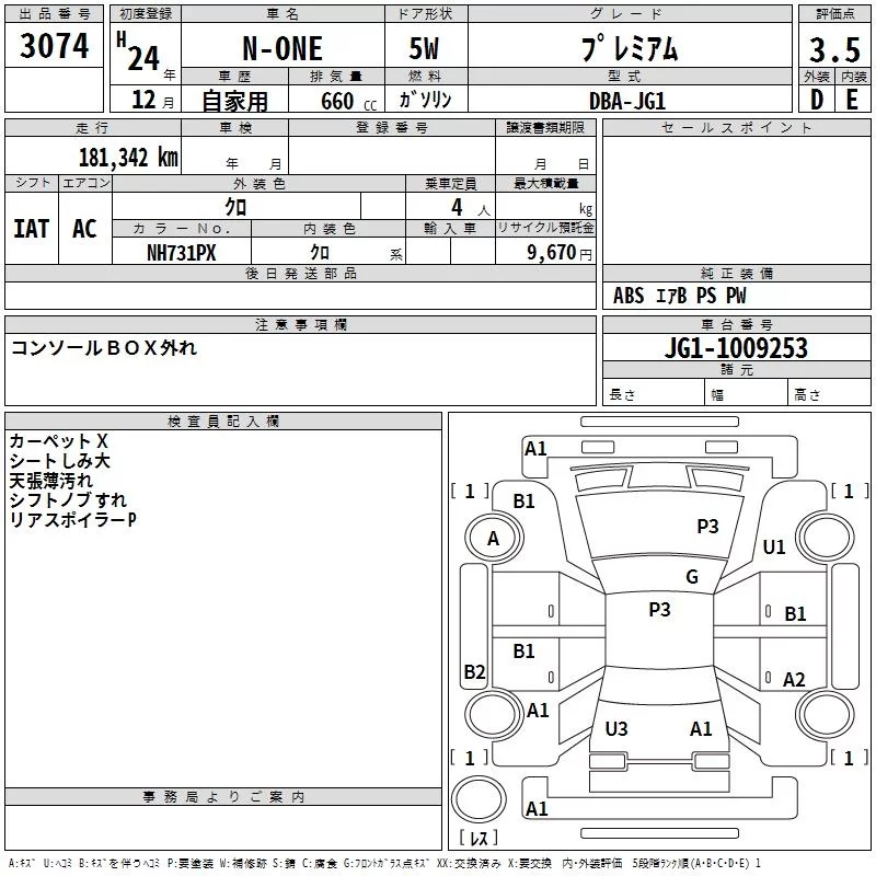 Honda N ONE с аукциона Японии TAA Hyogo лот № 3074