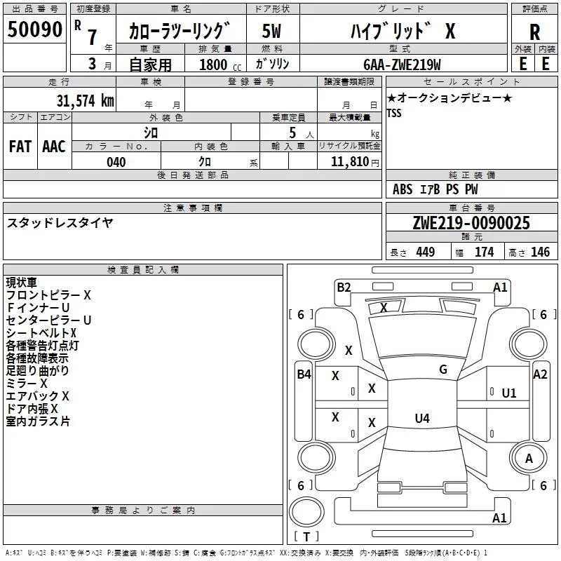 Toyota COROLLA TOURING с аукциона Японии TAA Hyogo лот № 50090