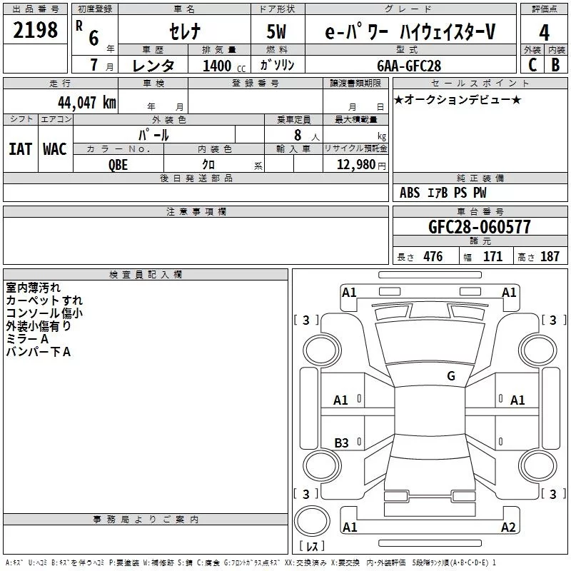 Nissan SERENA с аукциона Японии TAA Hyogo лот № 2198