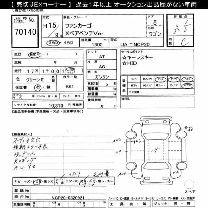 Toyota FUNCARGO с аукциона Японии JU Gifu лот № 70140