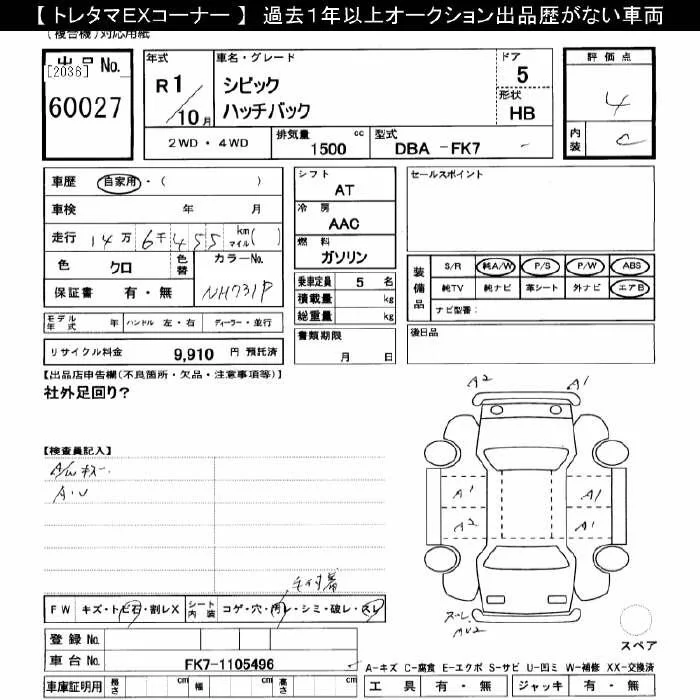 Honda CIVIC с аукциона Японии JU Gifu лот № 60027