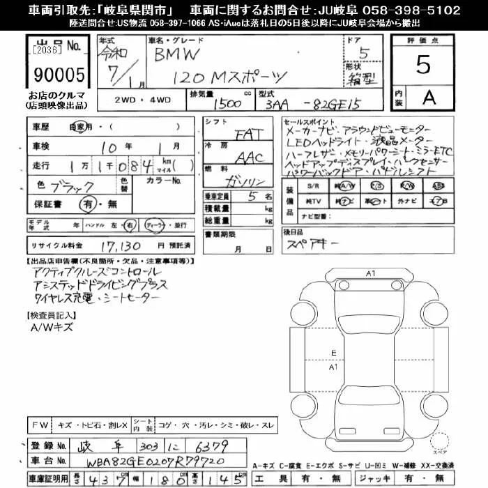 BMW 1-Series с аукциона Японии JU Gifu лот № 90005