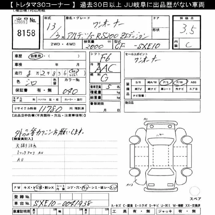 Toyota ALTEZZA с аукциона Японии JU Gifu лот № 8158