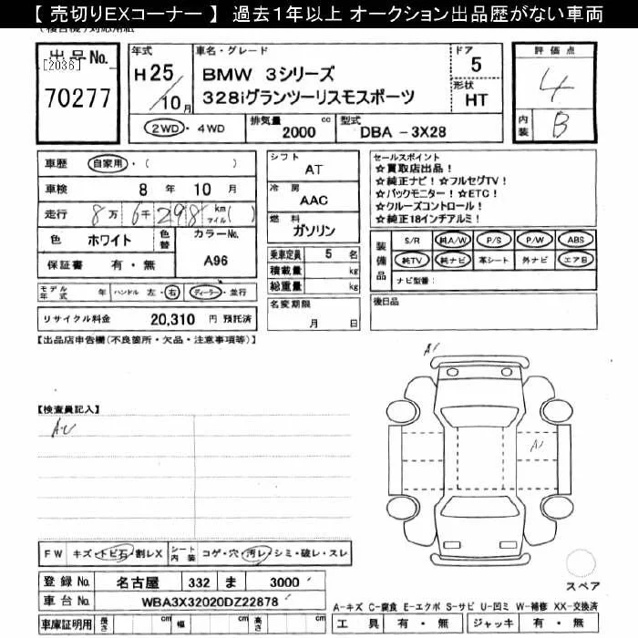 BMW 3-Series с аукциона Японии JU Gifu лот № 70277