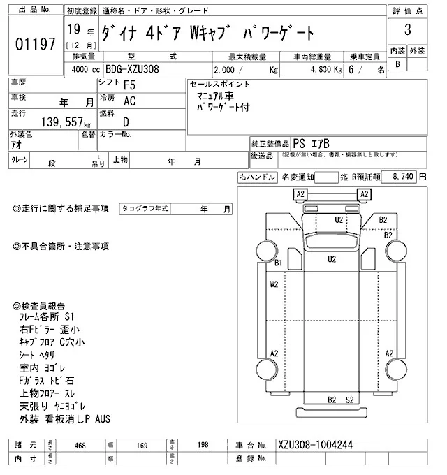 Toyota DYNA с аукциона Японии ARAI Oyama VT лот № 1197