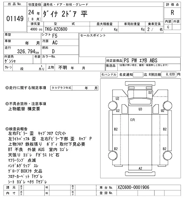 Toyota DYNA с аукциона Японии ARAI Oyama VT лот № 1149
