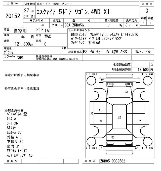 Toyota ESQUIRE с аукциона Японии ARAI Oyama VT лот № 20152