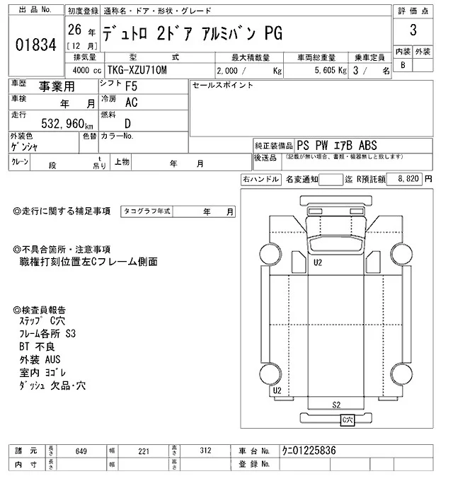 Hino DUTRO с аукциона Японии ARAI Oyama VT лот № 1834