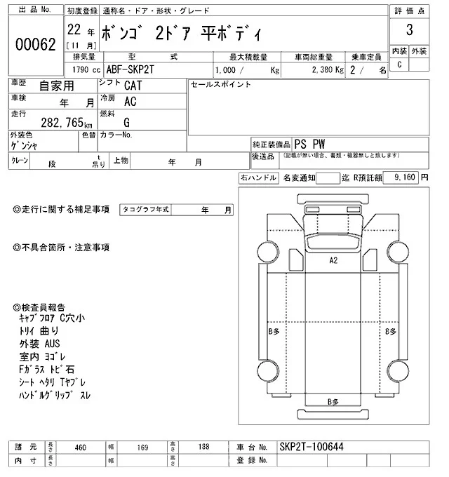 Mazda BONGO с аукциона Японии ARAI Oyama VT лот № 62
