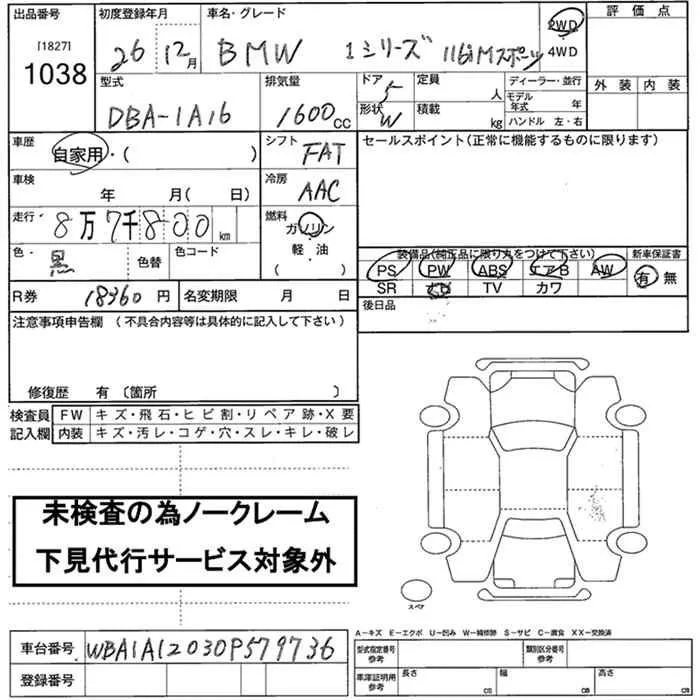 BMW 1-Series с аукциона Японии JU Nara лот № 1038