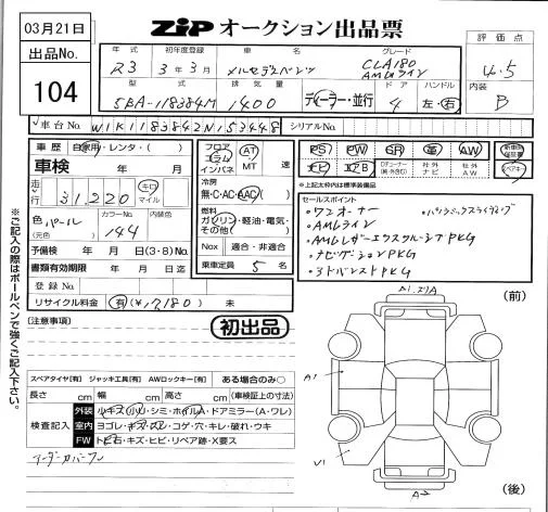 Mercedes-Benz CLA CLASS с аукциона Японии ZIP Tokyo лот № 104