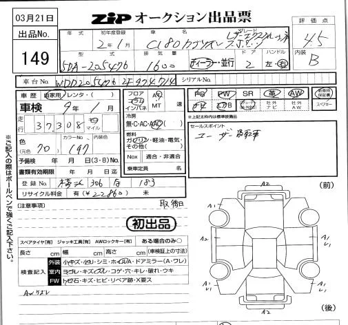 Mercedes-Benz C CLASS с аукциона Японии ZIP Tokyo лот № 149